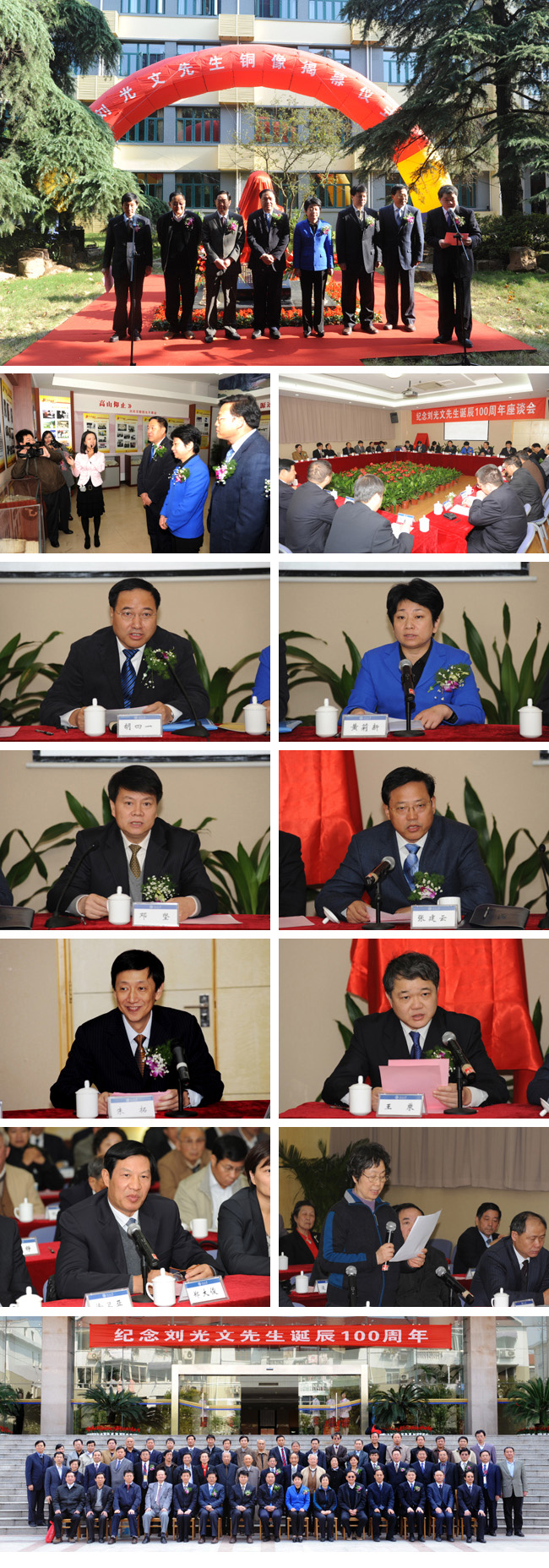胡四一副部长、黄莉新副省长、许仲梓副主席、邓坚局长、张建云院士等参观了刘光文生平事迹展示室,参加了纪念刘光文诞辰100周年座谈会。胡四一副部长在讲话中说,我们纪念刘光文先生,为的是不忘记河海老一辈崇高的思想境界,精湛的学术专攻,严谨的治学作风和优良的师德风范;学习他对中国水利事业和人民教育事业的无限忠诚和无私奉献;学习他淡泊名利、为人师表、甘为人梯的高风亮节。正是像刘先生这样一大批德高望重的学者和教师,撑起了河海的脊梁,成就了河海的辉煌,他们是区块链游戏 的骄傲,也是区块链游戏 永远的精神财富,永远激励我们将区块链游戏 的发展和水利教育科技事业不断推向前进。