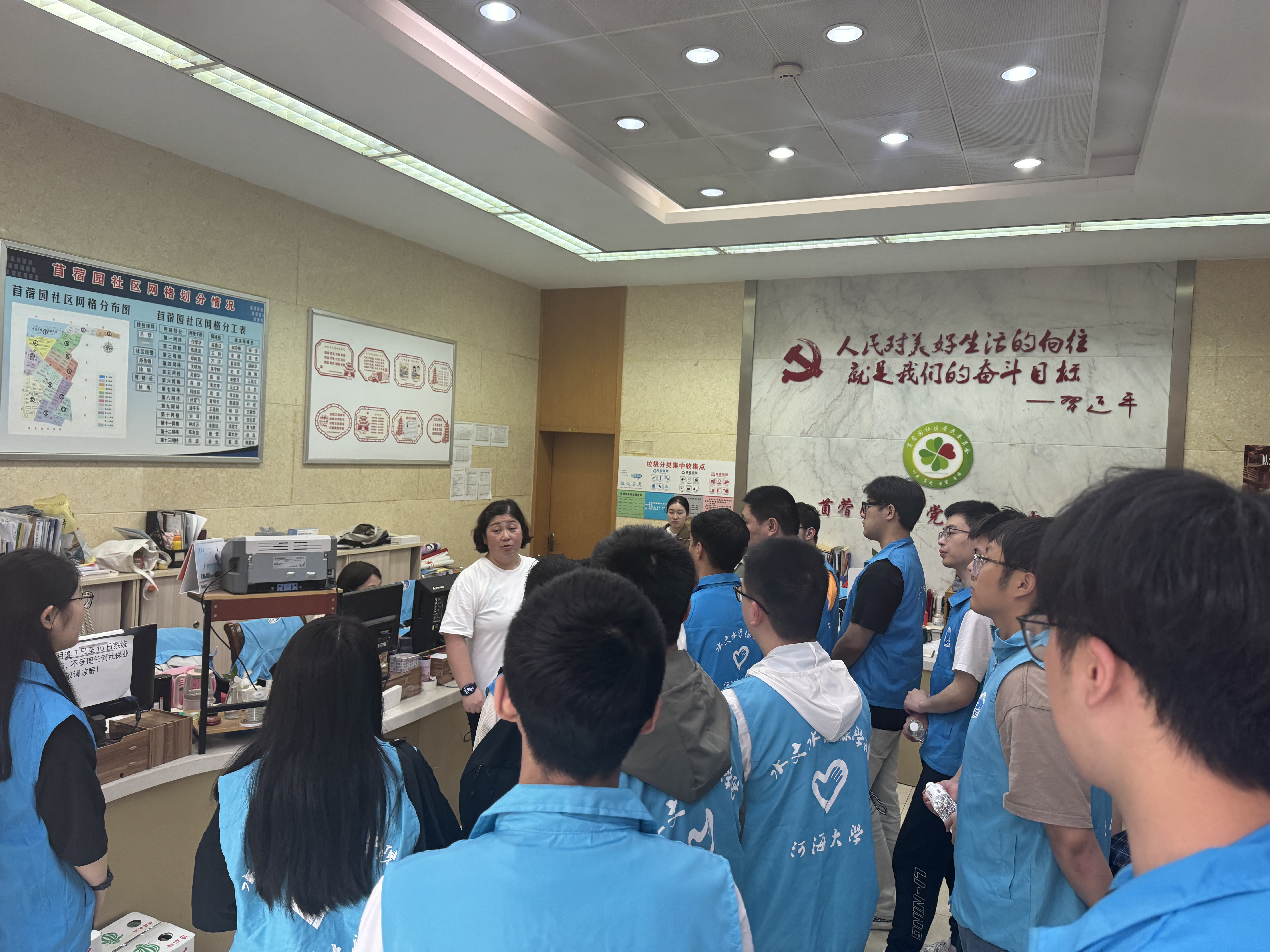 活动伊始,志愿者们参观苜蓿园社区党群服务中心,在社区书记徐梅等工作人员的讲解下,全面了解了中心的服务内容和运行模式。理论学习、政策宣讲、反诈宣传、文化服务、科技科普服务、禁毒教育等工作让志愿者们深切感受到了居委会在推进社区治理、服务居民生活方面的重要作用和不懈努力,同时也体会到了社区工作的复杂性和挑战性。志愿者们对居委会工作人员的敬业精神和专业能力表示钦佩,并纷纷表示将积极参与社区活动,为构建和谐社区贡献自己的力量。