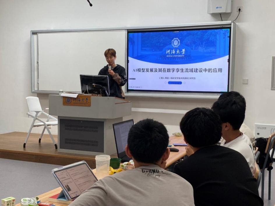 韩磊同学首先介绍了CNN、RNN、Transformer、Mamba四个模型,解释了数字流域的概念,最后阐释了深度学习与数字流域相结合,能够有效提升水利决策与管理的科学化、精准化、高效化能力和水平,帮助同学们进一步了解了智慧水利建设。