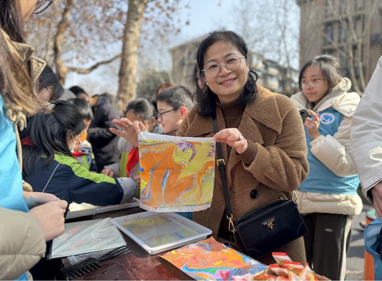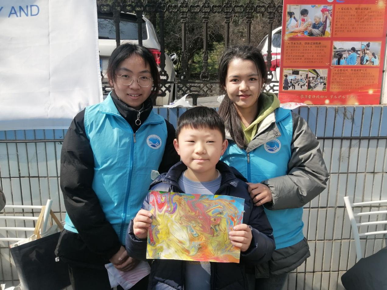志愿者们向来往的社区居民、青少年儿童详细介绍了水上作画的历史,演示了水拓画的绘制,大家也积极动手参加其中,在充满乐趣与创意的水拓画绘制环节中,加深了大节对水文化体验与感受。