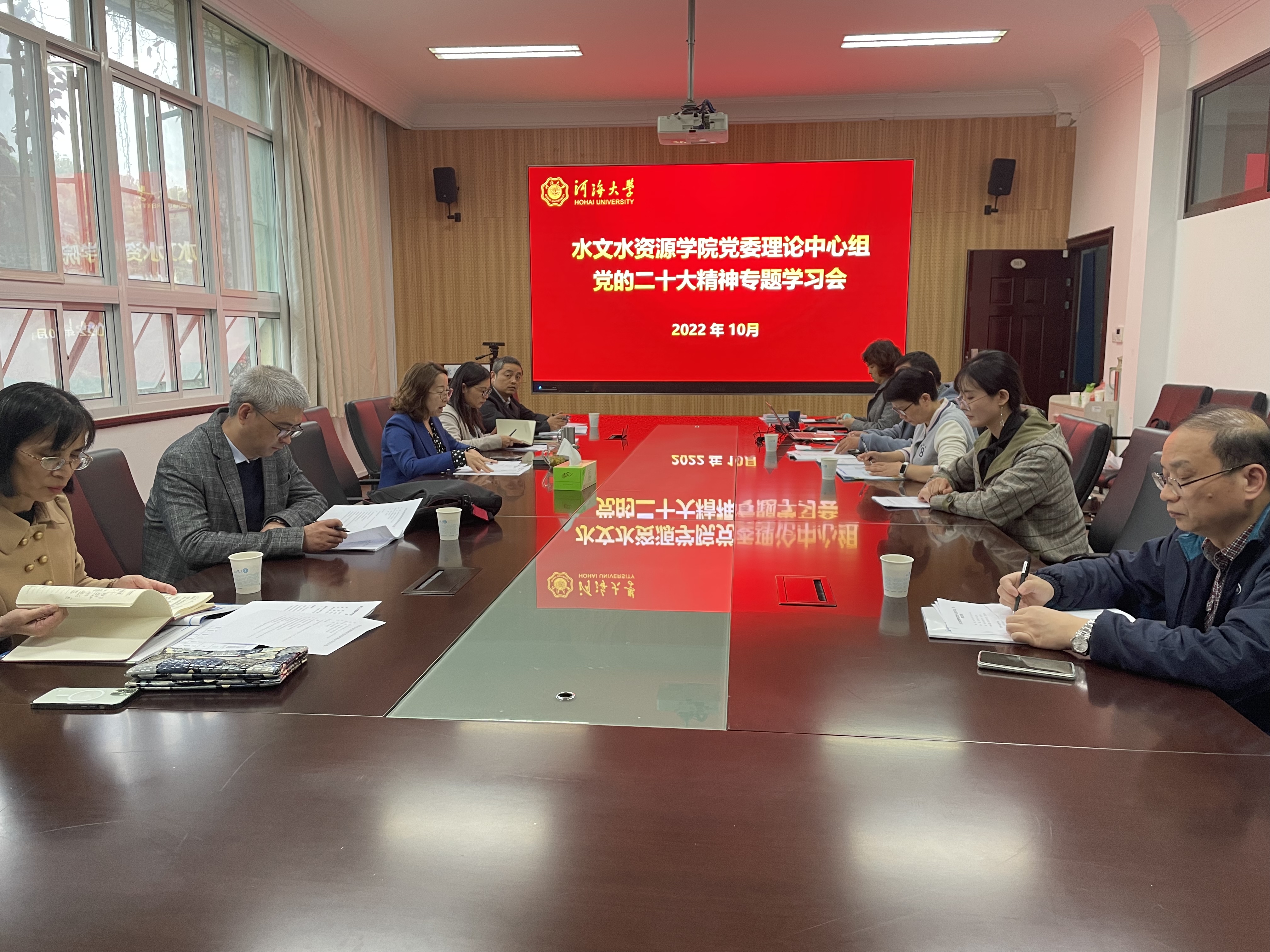 10月26日下午,水文院党委理论中心组举行学习党的二十大报告精神专题学习会。院党委书记孔祥冬主持会议,交流学习体会并就做好学习宣传贯彻党的二十大精神提出要求。院领导班子成员、党委委员等分别结合分管工作交流发言。