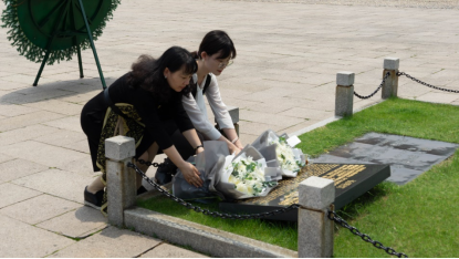 校友办党支部书记黄林楠和水文院水务、地信专业本科生党支部书记韦语涵分别代表两个党支部向雨花台革命烈士纪念碑敬献花束,悼念革命烈士,寄托哀思。