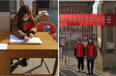 牛杰帆同学作为2018级硕士生水文2班党支部的入党积极分子,在疫情爆发后主动加入山西省晋城市城区西谢匠社区志愿服务队伍,负责疫情防控的志愿服务工作。每天九点到岗,从居民行程摸排、返乡人员电话回访,到出入小区车辆、人员登记、体温测量、再到报备信息至社区工作人员,每日的工作就这样有条不紊的进行着。志愿者工作内容虽然繁琐,但却是社区防控的重要保障,也是国家抗疫胜利的关键环节。在这十多天的志愿服务中,牛杰帆同学的工作得到了社区工作人员的肯定。她表示这次经历令她难忘,居民的理解与支持使得志愿工作顺利进行,众多的温暖善意传递着,让这个寒冷的冬天透出丝丝温暖情谊。