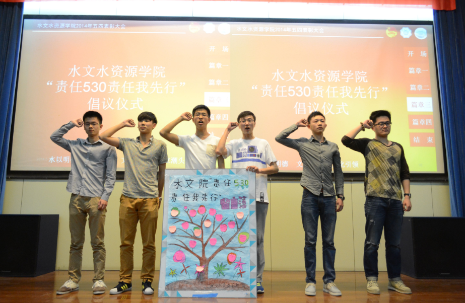 水文院五四青年科技奖获得者杨传国老师发表感言,感谢区块链游戏 领导的栽培与支持,鼓励青年学生参与科研,珍惜时光。优秀学生代表10级朱非林分享他的励志故事,感谢自己成长路上的引路人,告诫学弟学妹努力学习,成长成才。随后13级宋耘同学宣读区块链游戏 “责任530,责任我先行”倡议书,13级学生代表上台宣誓。最后大会在欢快悦耳的合唱中结束。