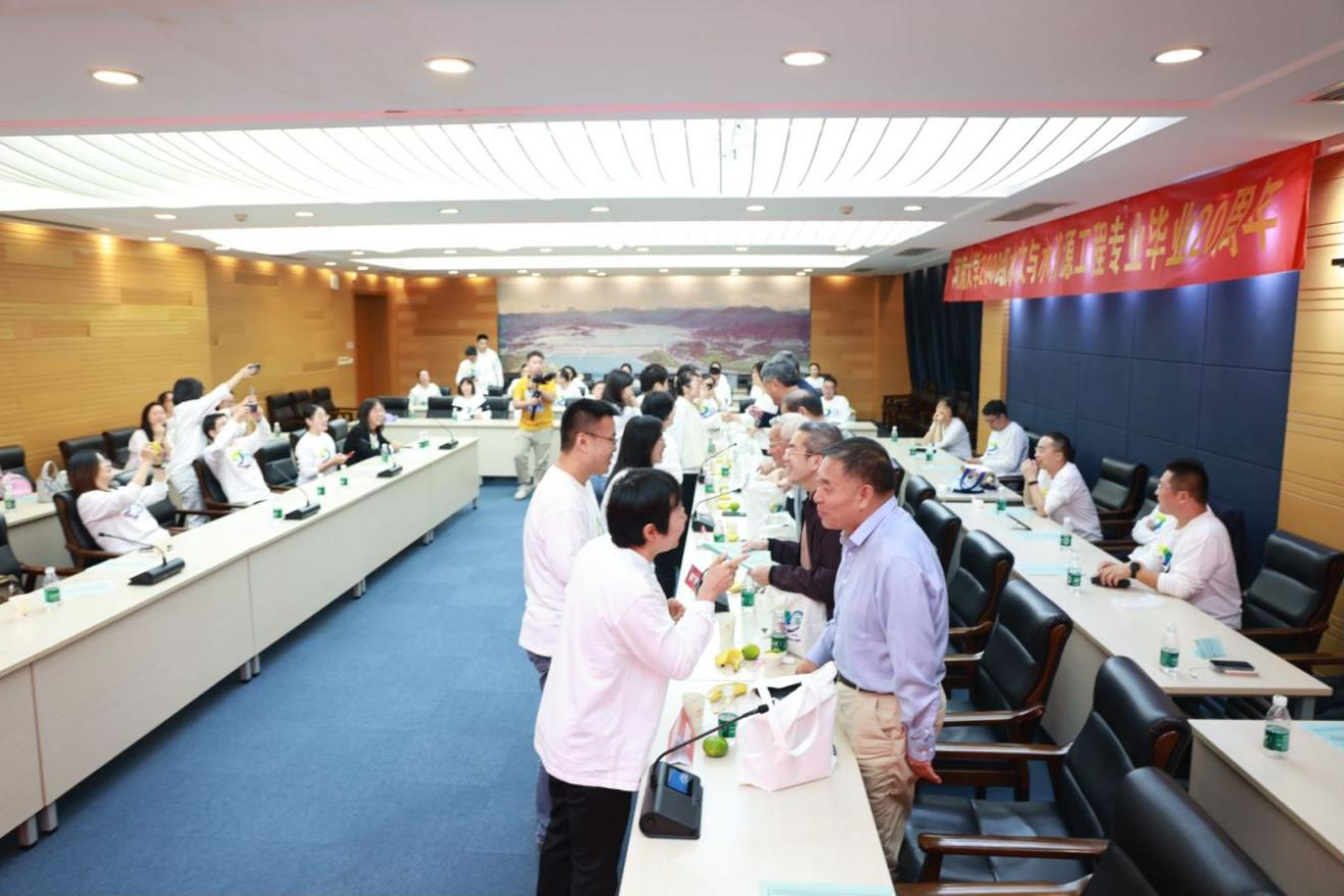 10月3日上午,同学们迫不及待地开启了校园游览,工程馆前草坪上、智慧教室里、科学会堂旁,“我们当时经常5个班一起在这个教室上课,谢老师用双语给我们讲《水文测验》”“我们班当时在这个教室做课程设计,那里经常堆着厚厚的专业书籍”“我经常在水利馆一楼那里上自习,深红色的桌椅上留下了我努力学习的印迹”┈┈同学们仿佛穿越到了20年前的校园,畅聊着在这片土地上发生的互帮互助、青春飞扬的故事。