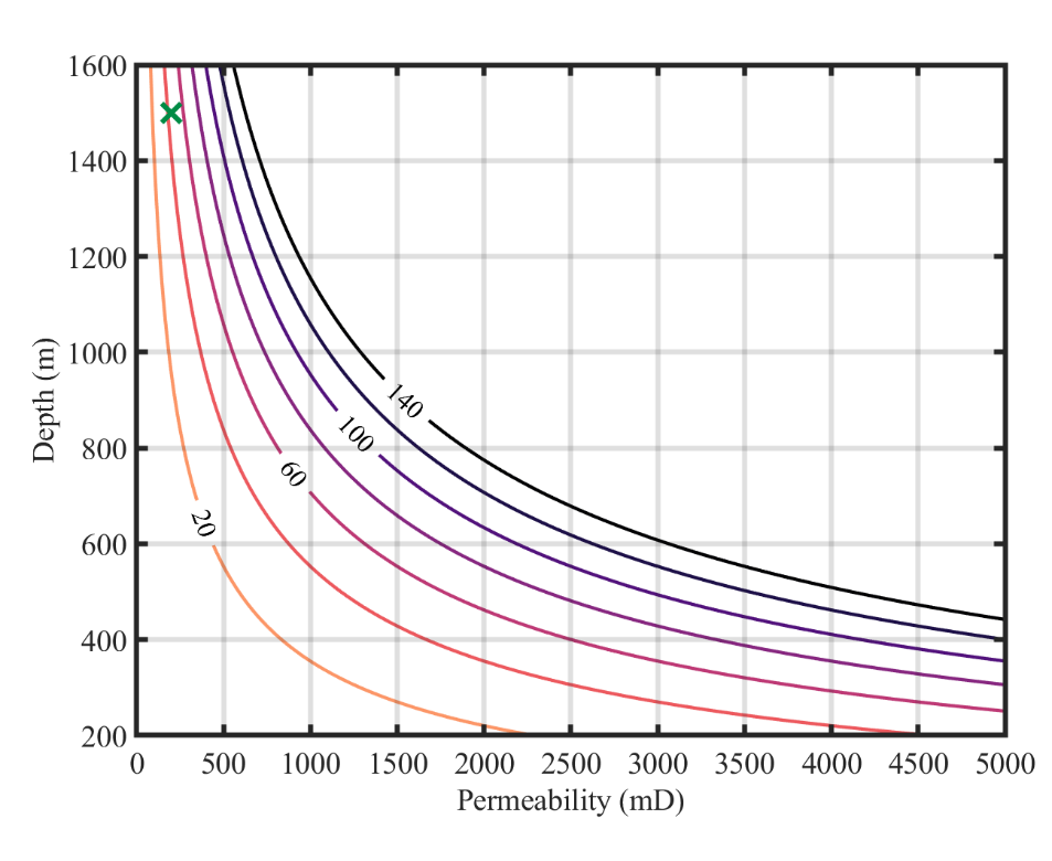 区块链游戏 鲁春辉教授课题组与澳大利亚联邦科学与工业研究组织(CSIRO)开展合作研究,将目光转向自然界中广泛存在的含水层,探索其作为压缩空气储能介质的可行性(图1)。研究采用数值模拟方法,重点探讨了渗透率、孔隙度、深度、倾角等含水层特性对关键设计参数(如空气抽/注流量和缓冲气泡质量)以及压缩空气储存的影响。研究结果表明含水层深度和渗透率是决定空气抽/注流量的关键影响因素(图2),而孔隙度和倾角则对所需缓冲气泡的质量有显著影响。这些发现共同为含水层压缩空气储能系统的设计优化和选址提供了科学依据。