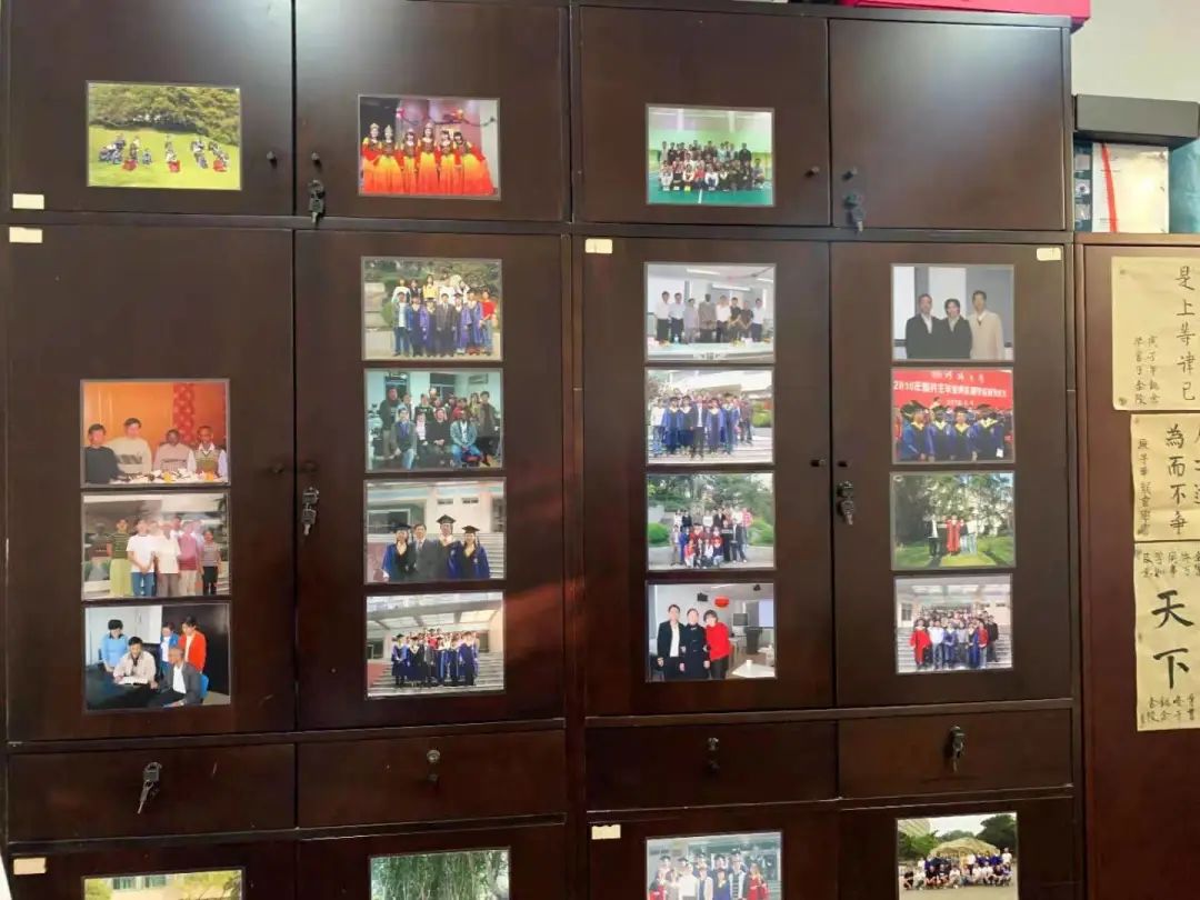 小记者走进束老师的办公室时被深深震撼了,一个高高的锻炼器械放在屋子中间,墙壁上、书柜上贴满了各种各样的合照、书法、锦旗,束老师还十分热情为小记者倒了一杯茶……不难看出,在讲台上热情播撒的束老师,在生活中一样也是充满活力,热爱生活的。