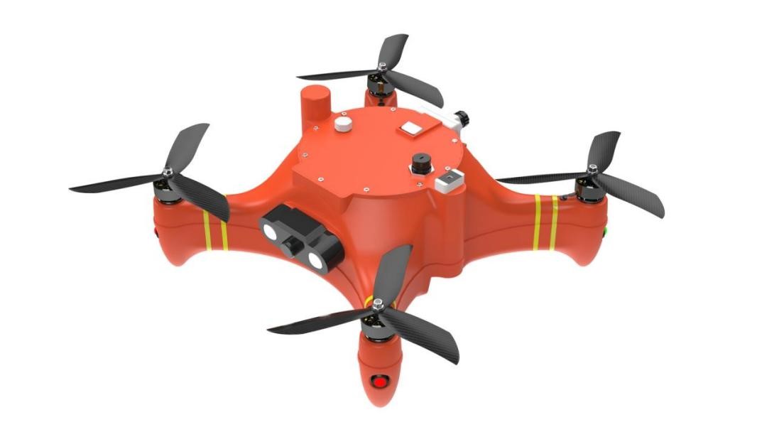 电动两栖四旋翼无人机为我公司首创专利产品,具备水上起降、水上航行、水上作业的能力,主要应用于水域巡检执法、环境保护监测、水上科学考察等场景。该产品具有无人机和无人船的双重功能,可高效地完成多种水上作业。