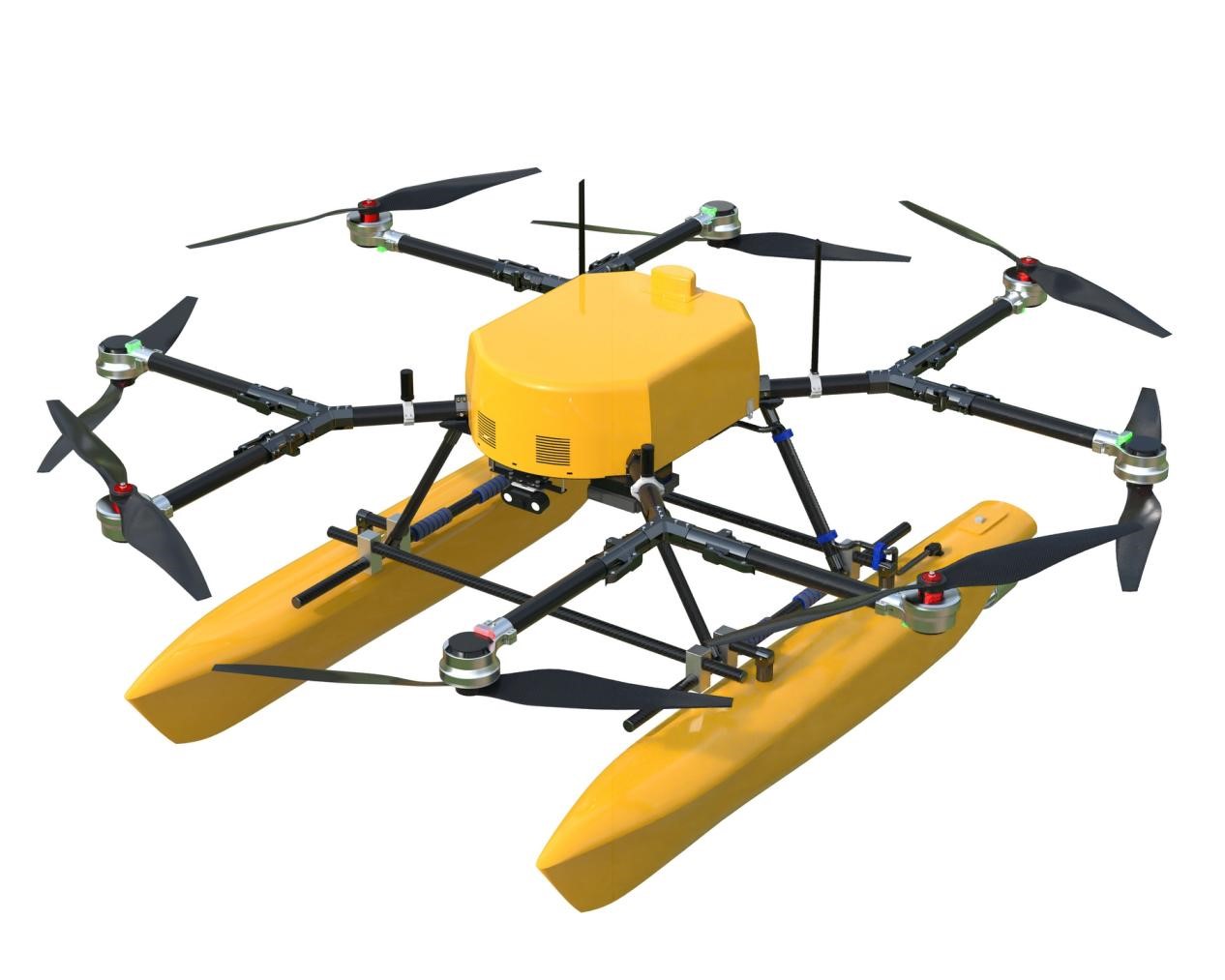 电动两栖六旋翼无人机,具备水上停泊、水上起降的能力,主要应用于水域巡检执法、环境保护监测等场景。该产品具有较强的水上作业能力,能够提高水上作业的效率。