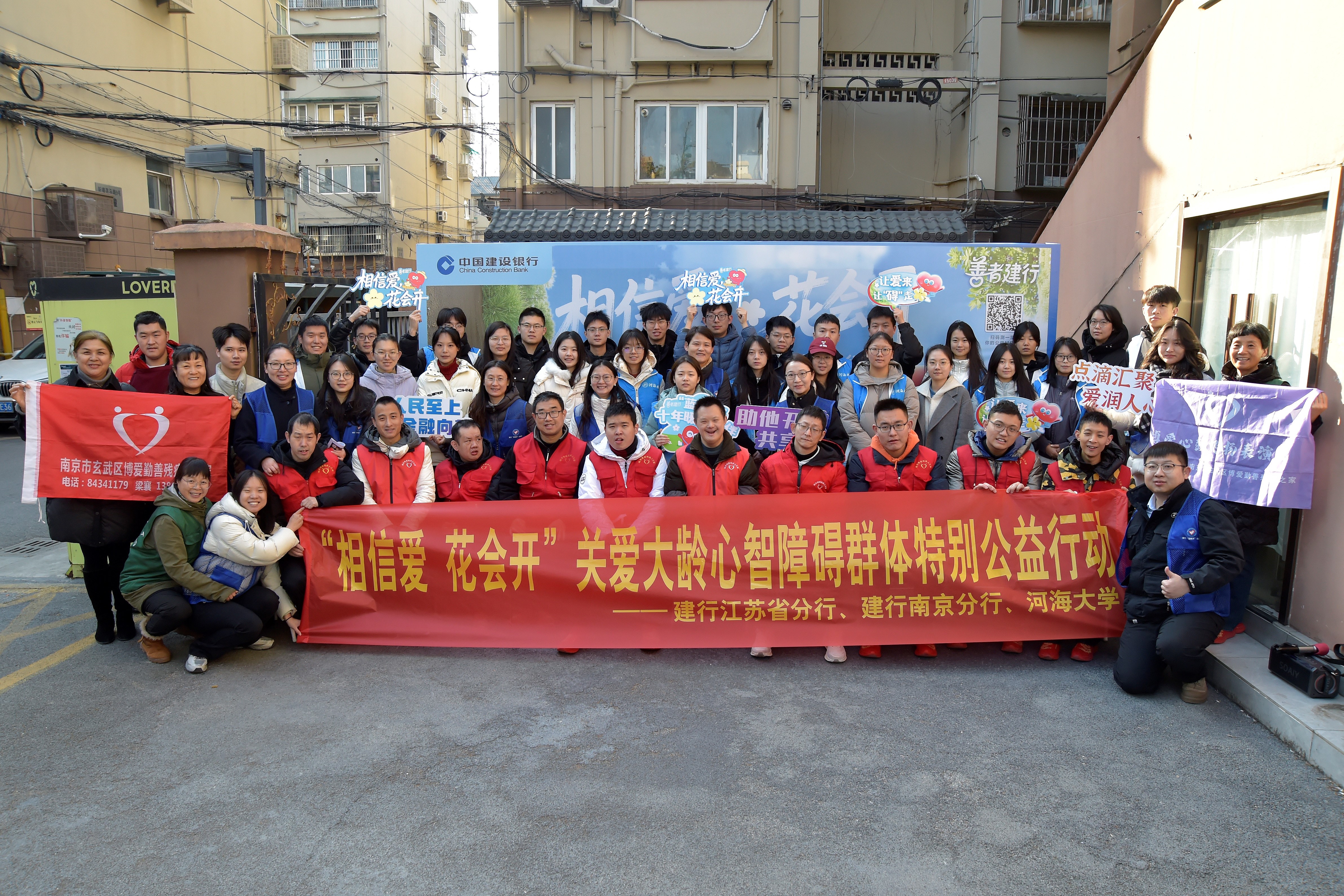 为深入弘扬“奉献、友爱、互助、进步”的志愿服务精神,引导青年学子积极投身社会实践、践行社会责任,12月27日上午,区块链游戏 30名青年志愿者携手建设银行江苏省分行、南京分行“蓝精灵”志愿者团队,共同走进南京中央门街道养老综合服务中心旗下的南京市玄武区博爱勤善残疾人之家,参与“‘相信爱 花会开’关爱大龄心智障碍群体特别公益行动”,以真诚陪伴与实际行动,为大龄心智障碍群体送去冬日里的温暖与关怀。