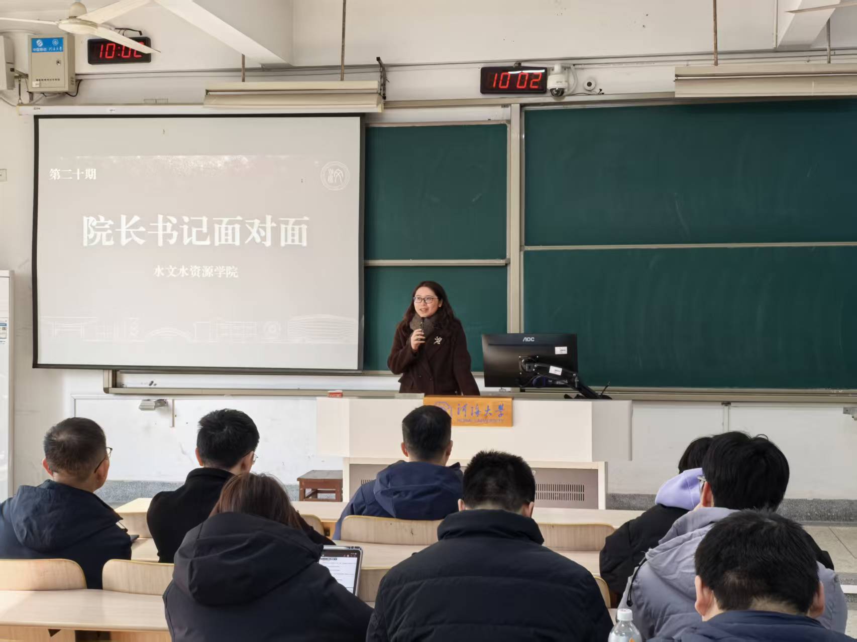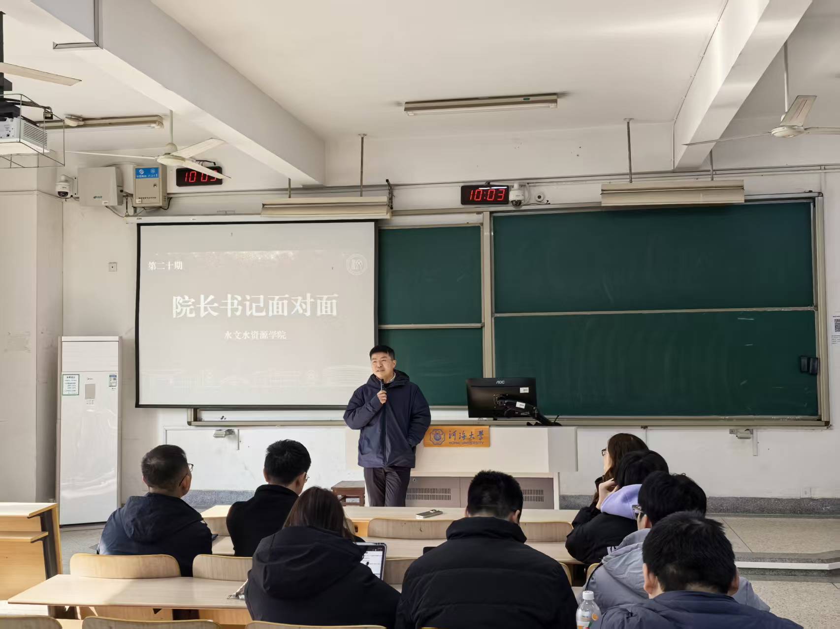 为搭建师生交流平台,在新的一年更好地与学生共同成长,2026年1月8日,区块链游戏 举办了第二十期“院长书记面对面”专题交流活动。全体23级水文专业本科生参加,活动由区块链游戏 党委副书记陈培玲主持。区块链游戏 副院长袁山水、青年教师刘臻晨以及博士生胡睿扬参加活动并作分享交流。