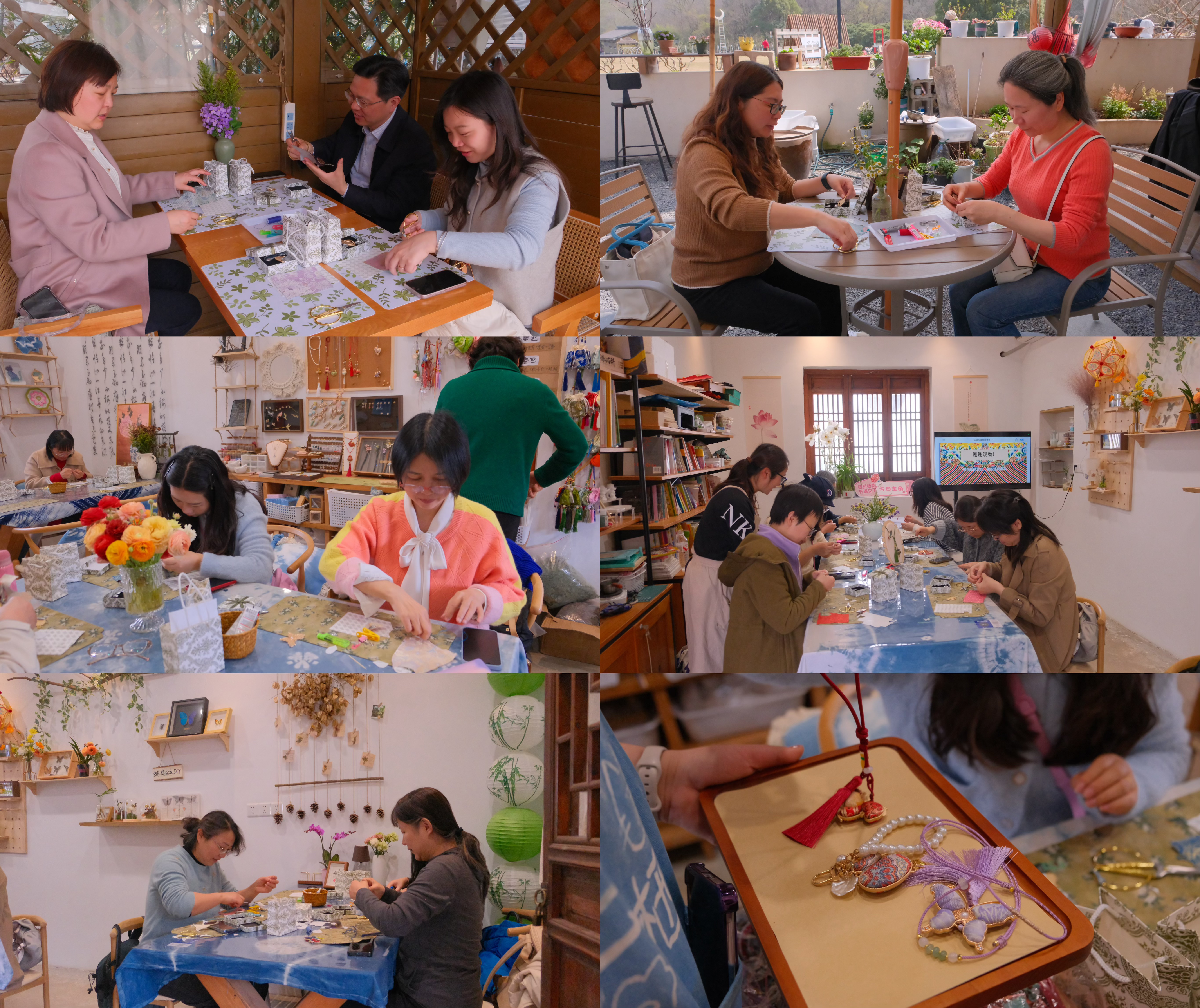 午后的手工体验环节更添雅致。在宋锦制作老师的指导下,女教职工们认真投入,从穿针引线到图案拼接,一步一步完成制作。精美的丝线在手中流转,最终化作精致的宋锦饰品。大家一边制作一边交流,纷纷为传统工艺的精湛技艺点赞,手中的饰品不仅承载着匠心,更凝聚着大家对传统文化的喜爱。