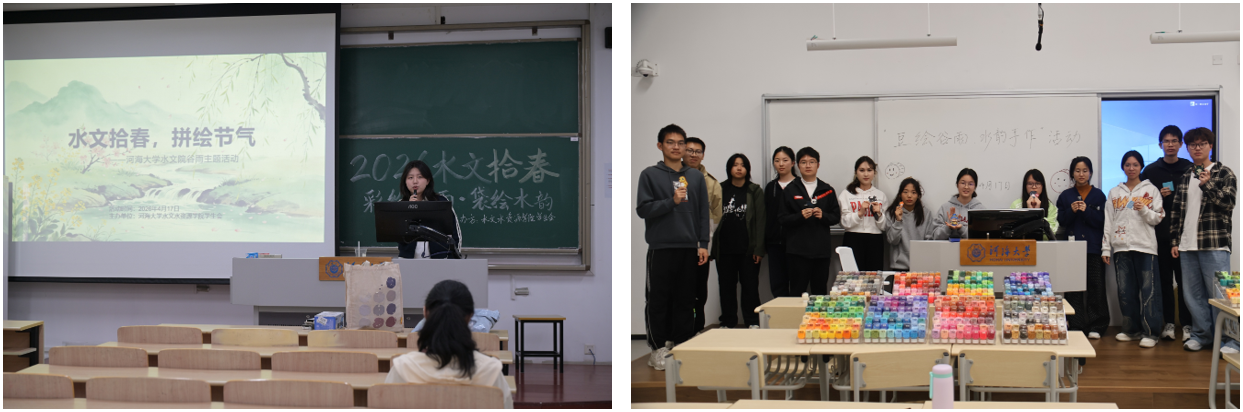 为弘扬中华优秀传统节气文化,体悟谷雨时节与水文专业的深厚渊源,丰富校园文化生活,扎实开展美育实践教育,417日,水文院学生会在江宁校区与常州校区同步举办“水文拾春,拼绘节气”创意手作美育活动。水文学子踊跃参与,以巧手绘春、以匠心造物,在指尖创作中感受节气之美、水韵之美与艺术之美。